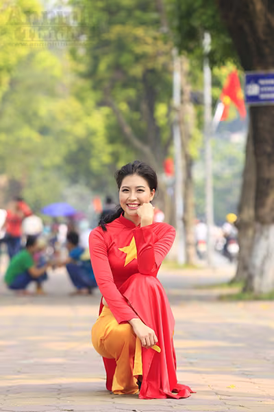 - Người đẹp "trình làng" mẫu áo dài trong Festival Áo dài Hà Nội 2016