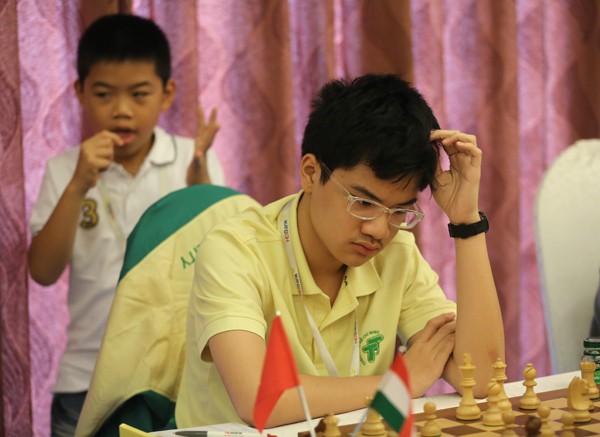 Tài năng trẻ này thậm chí còn qua mặt đàn anh Nguyễn Ngọc Trường Sơn (4 điểm, tạm xếp hạng 6), bởi kỳ thủ quê Kiên Giang thua cuộc trước phong độ rất tốt của hạt giống số 1 Wang Hao (Trung Quốc). Wang Hao cùng đồng hương Zhao Jun đạt 5,5 điểm sau 6 ván đấu và chia nhau ngôi đầu bảng tổng sắp.