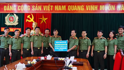 Đại tá Đoàn Ngọc Hùng, Phó Giám đốc CATP Hà Nội trao tặng 2 tỷ đồng hỗ trợ bà con vùng lũ tại Công an tỉnh Hà Tĩnh