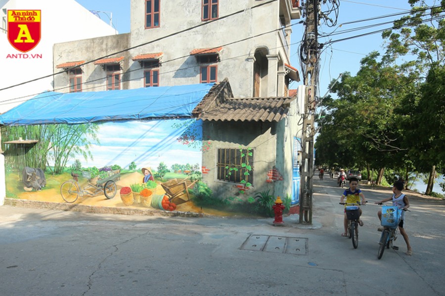 ANTD.VN -Những bức họa màu sắc rực rỡ, rất gần gũi với người dân địa phương được thể hiện sinh động trên tường nhà dọc đường làng Chử Xá (xã Văn Đức, Gia Lâm, Hà Nội).