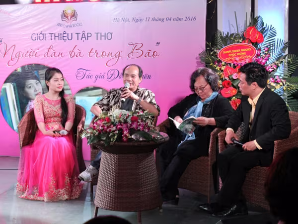 Tác giả Đỗ Quyên (bên trái) tại buổi ra mắt tập thơ