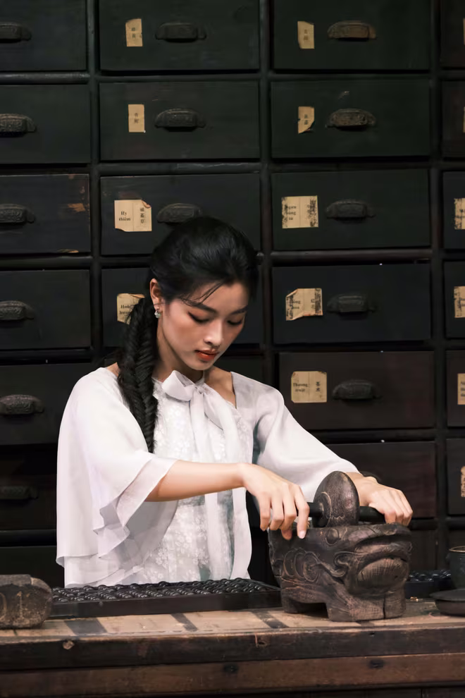 Trong bộ ảnh áo dài được Lan Thy "khoe" với mọi người trong dịp đầu năm mới, bối cảnh chụp là Bảo tàng Y học cổ truyền Việt Nam. Nữ diễn viên cho biết, cô từng theo học ngành Y nên đã quyết định chọn địa điểm ý nghĩa này làm bối cảnh chụp. Lan Thy bộc bạch, cô rất thích câu "thuốc đắng giã tật", bởi câu nói ấy nhắc nhở cô rằng những bài học trong cuộc sống mà bản thân mình hay bất kỳ ai trong trải qua là điều hiển nhiên, điều quan trọng là qua đó mỗi người học cách vượt qua, rút kinh nghiệm và vững bước tiếp trên con đường phía trước.