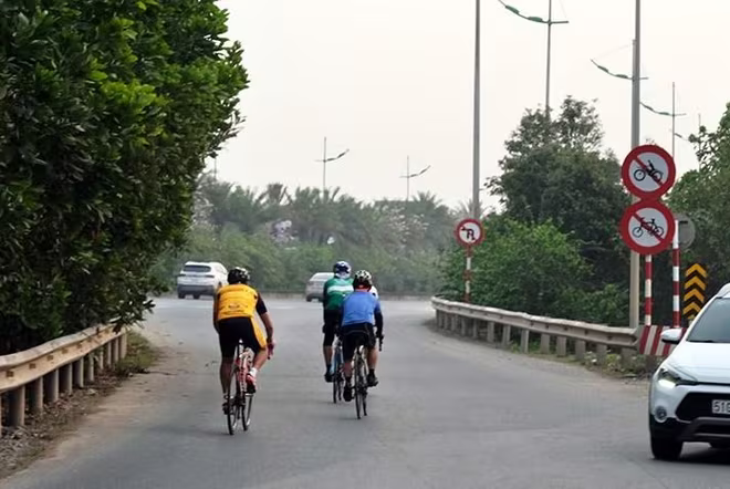 Người đi xe đạp dàn hàng ngang trên đường… và hồn nhiên đi vào đường cấm |