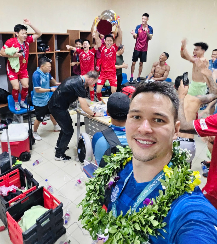 Niềm vui nối dài như bất tận khi Nguyễn Filip cùng đồng đội tiếp tục mở tiệc ăn mừng đầy náo nhiệt trong phòng thay đồ.