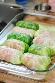 Cầu kỳ hơn một chút thì là bắp cải cuốn thịt băm. Thịt lợn vai lẫn cả mỡ được băm nhỏ, ướp mắm muối cùng chút hành tím đập dập băm nhỏ rồi cuốn vào trong lá. Để dễ cuốn hơn trước đó cần công đoạn chần qua nước sôi, lá bắp cải mềm sẽ dễ tạo hình hơn. Cẩn thận thì lấy một cọng hành buộc lại. Bắp cải cuốn có thể rán, có thể cứ thế đổ nước cà chua sốt, có thể nấu canh bắp cải cuốn… Thịt bên trong lá bắp cải do không phải tiếp xúc trực tiếp với nhiệt nên mềm, vị của bắp cải thấm vào thịt khiến cho bắp cải cuốn thanh hơn, dễ ăn và không ngán.