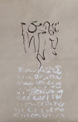Bằng giấy dó và mực nho, Minh Tâm đã vẽ lên trên đó những ký diễn tả về quá trình tạo nên muôn loài, là sự sinh nở.