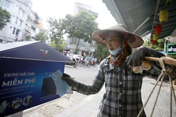 Doanh nhân Hoàng Tuấn Anh ở TP.HCM đã xây dựng một máy ATM cung cấp khẩu trang cho cộng đồng trong đợt bùng dịch thứ hai. Máy phân phát khẩu trang miễn phí này được điều khiển từ xa để đảm bảo sự phân phối công bằng, đồng thời có hoạt động nhắc nhở người nhận rửa tay trước khi chạm vào máy phân phối. Trong đợt dịch đầu tiên, ông Hoàng Tuấn Anh đã đặt cây ATM phát gạo đầu tiên trước văn phòng của mình. Máy ATM này cung cấp 1,5kg gạo miễn phí cho mỗi người và được báo cáo đã cấp phát 5 tấn gạo trong 2 ngày hoạt động đầu tiên. Máy ATM phát cơm và khẩu trang của ông Hoàng Tuấn Anh sau đó đã được các doanh nhân và tổ chức từ thiện nhân rộng trên khắp cả nước.