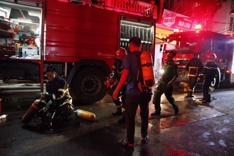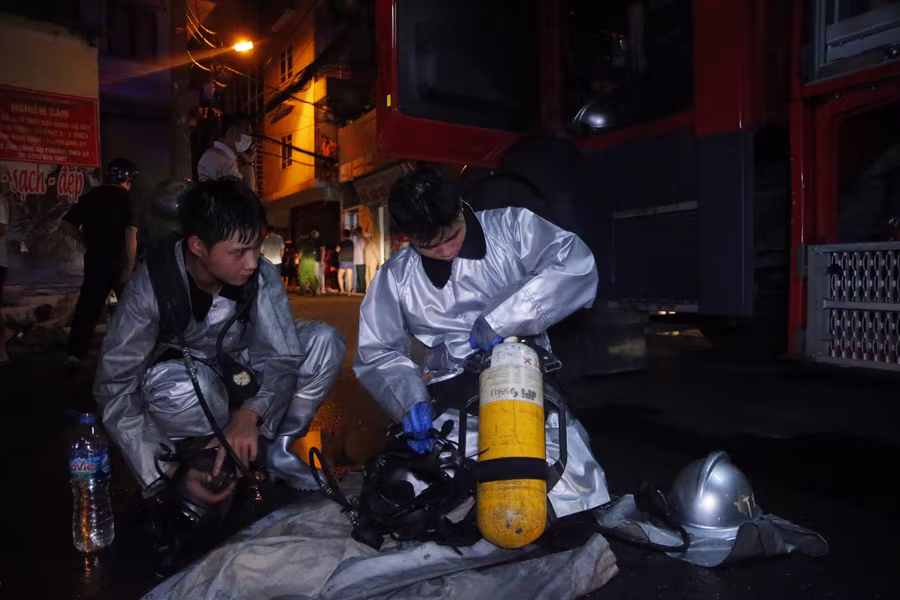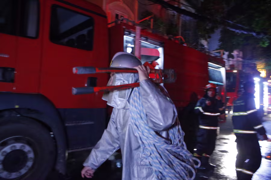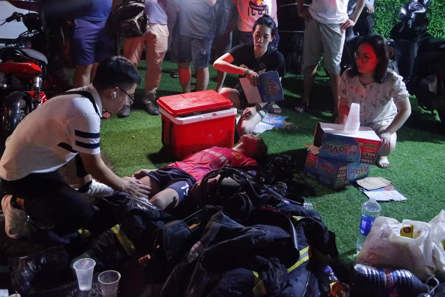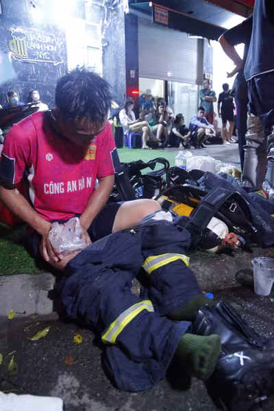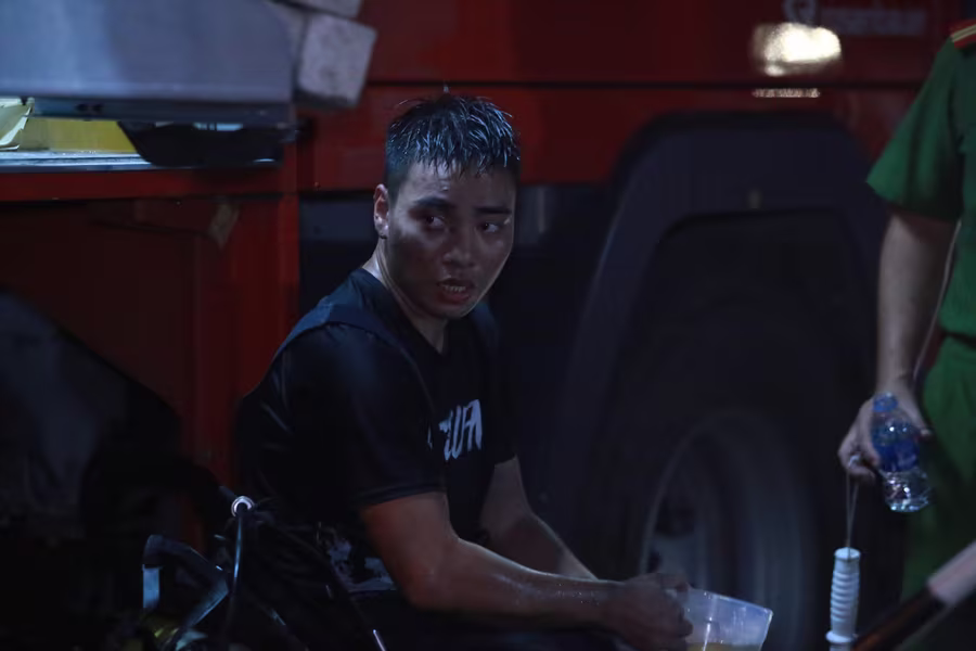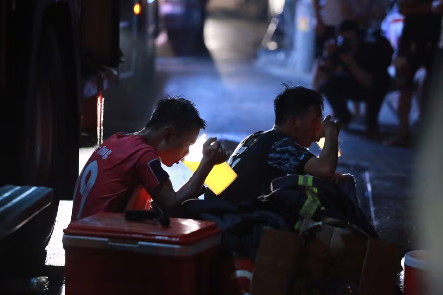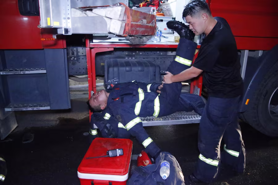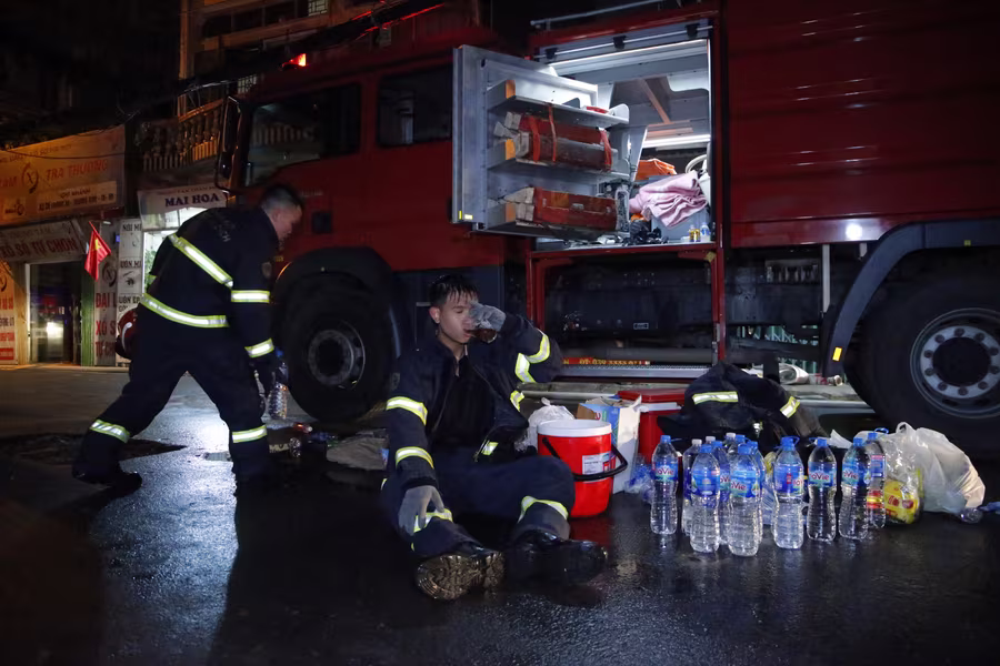 ANTD.VN - Liên tục trong gần 6 giờ, các chiến sĩ Cảnh sát PCCC&CNCH CATP Hà Nội thay phiên nhau "chiến đấu" với giặc lửa để dập tắt đám cháy, cứu những nạn nhân ra khỏi hiện trường và tìm kiếm những người không may tử vong. Trong khoảng thời gian đó, những chiến sĩ cảnh sát PCCC luôn tận tâm, hết mình vì công việc để làm sao dập tắt đám cháy, cứu người mắc kẹt, thời gian kéo dài khiến nhiều chiến sĩ kiệt sức.
