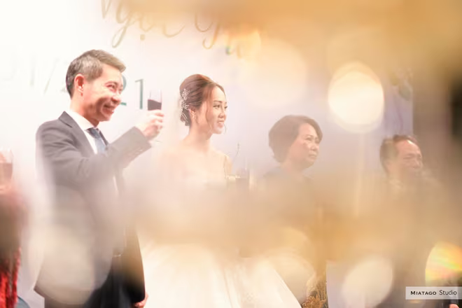 NSND Công Lý và cô dâu Ngọc Hà tại tiệc cưới diễn ra tối 2-1-2021