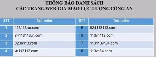 Tên miền của 8 trang web giả mạo lực lượng Công an