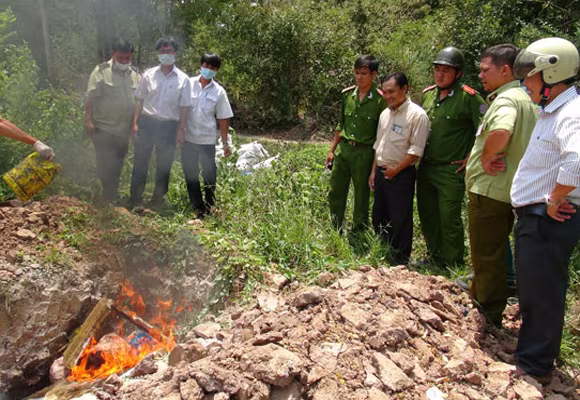 Sau đó, đoàn kiểm tra đã lập biên bản xử lý vi phạm và tịch thu toàn bộ số da heo trên để tiêu hủy.