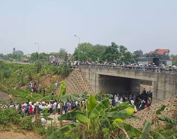Vị trí xác định thi thể tại cầu chui đê hữu sông Đáy, cạnh Đại lộ Thăng Long, thuộc km16+622. Thi thể thanh niên mặc quần bò, cởi trần, nằm sát với khu có nhiều bụi chuối dưới chân cầu. Từ vị trí thi thể thanh niên so với mặt cầu và mặt đê sông Đáy có độ cao ước khoảng 3,5m. Vụ việc thu hút nhiều người dân hiếu kỳ.