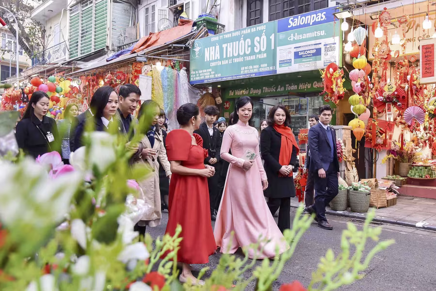 ANTD.VN - Trong khuôn khổ chuyến thăm cấp Nhà nước Việt Nam của Tổng thống Philippines, Phu nhân Chủ tịch nước Võ Văn Thưởng, bà Phan Thị Thanh Tâm và Phu nhân Tổng thống Philippines, bà Louise Araneta Marcos đã cùng dạo phố cổ, tham quan chợ hoa Hàng Lược - nét văn hoá người Hà Nội những ngày giáp Tết Nguyên đán Giáp Thìn 2024.