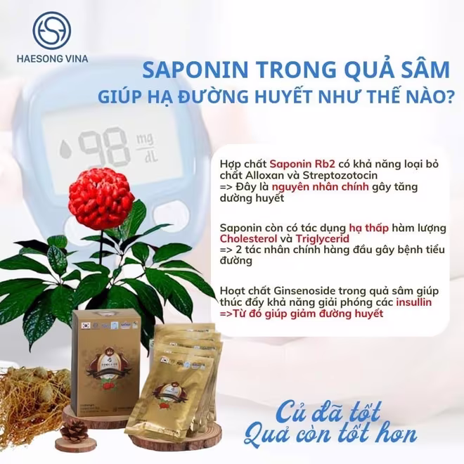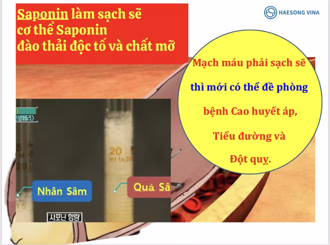 Trên thực tế, củ sâm được coi như một thần dược, rất tốt cho sức khỏe con người, nhưng củ sâm có những điểm không thể so sánh với quả sâm. Ngoài việc hàm lượng saponin thấp hơn nhiều so với quả sâm, thì không phải ai cũng có thể sử dụng củ sâm. Người huyết áp cao hay thấp đều phải rất thận trọng khi dùng củ sâm. Ông bà ta có câu, “đau bụng mà uống nhân sâm, coi chừng mất mạng” là vì vậy. Trong khi đó, sản phẩm từ quả sâm có tính hàn mát nên an toàn cho cả người bị huyết áp, ai cũng dùng được, rất tốt cho sức khỏe. Người huyết áp, tim mạch bất thường khi sử dụng sản phẩm từ quả sâm Haesong Vina sẽ bình hòa, khỏe mạnh, kéo dài tuổi thọ.