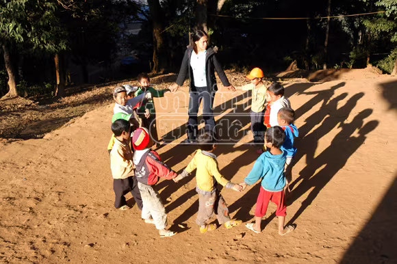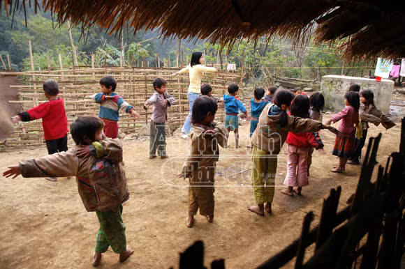 Cô giáo và những học trò thân yêu trong giờ thể dục tại sân trường Nậm Ban, Lại Châu