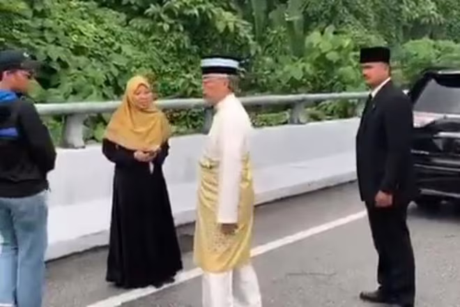 Ông đã yêu cầu đoàn xe dừng lại rồi bước ra khỏi xe và tiến tới hỏi thăm người phụ nữ gặp nạn. Hoàng hậu Tunku Azizah Aminah Maimunah Iskandariah Sultan Iskandar cũng đi cùng Quốc vương.