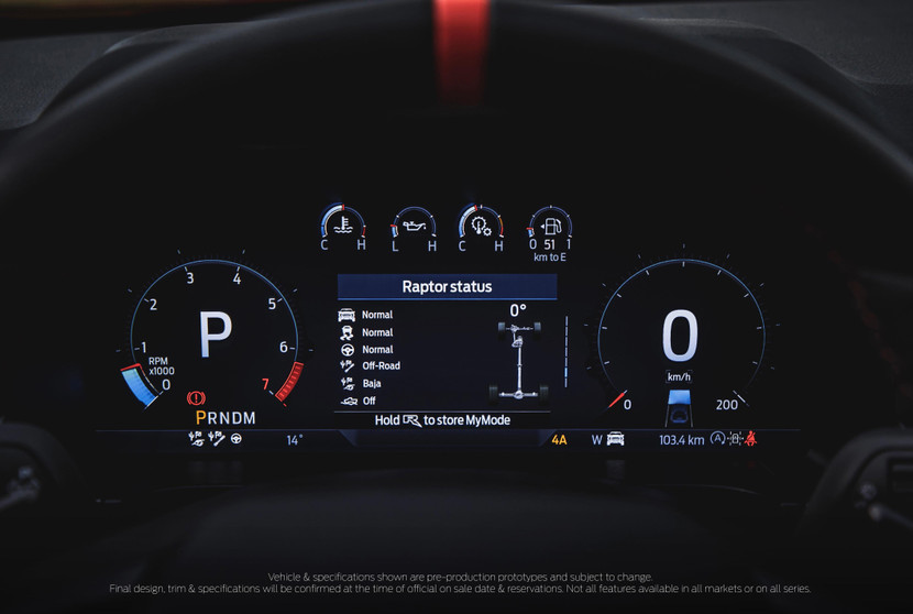 Ranger Raptor tự hào khi có một cabin kỹ thuật số hoàn toàn, với cụm đồng hồ kỹ thuật số 12,4 inch độ phân giải cao và màn hình cảm ứng trung tâm 12,1 inch. Hệ thống giải trí và kết nối SYNC 4A®i thế hệ mới của Ford, hỗ trợ kết nối điện thoại thông minh không dây Apple và Android. Hệ thống âm thanh Bang & Olufsen®ii 8 loa cung cấp nhạc nền cho chuyến phiêu lưu tiếp theo của bạn.