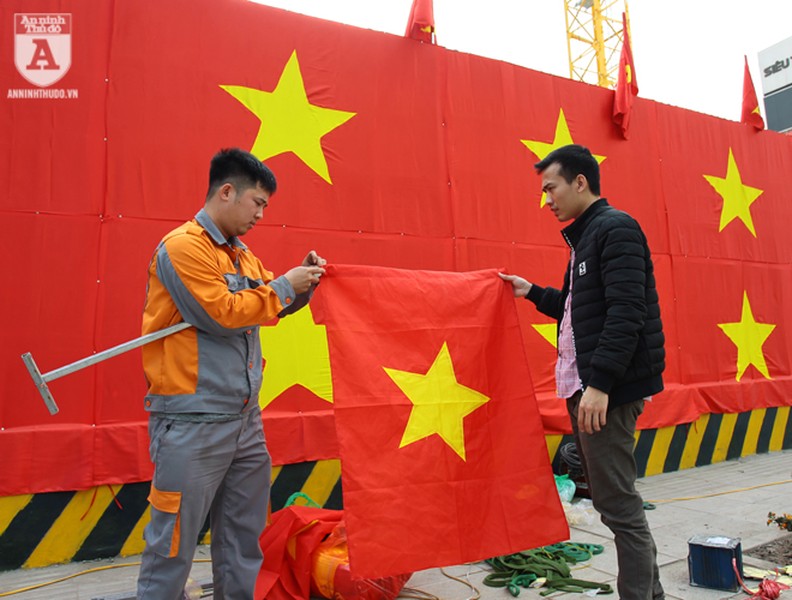 ANTD.VN -Tại một công trình trên đường Nguyễn Trãi (quận Thanh Xuân, Hà Nội), các nhà thầu đã phủ kín những lá cờ đỏ sao vàng trên bức tường dài khoảng 500m2. Được biết, các nhà thầu lắp cờ nhằm chào đón, cổ vũ các tuyển thủ U23 Việt Nam trong trận chung kết vào ngày 27-1 tới đây.