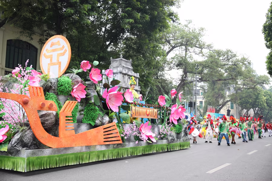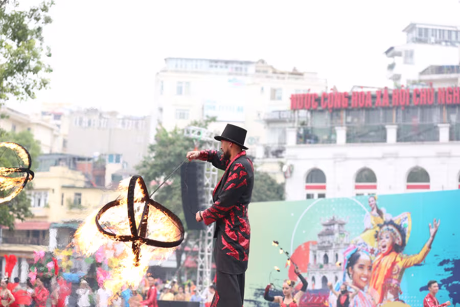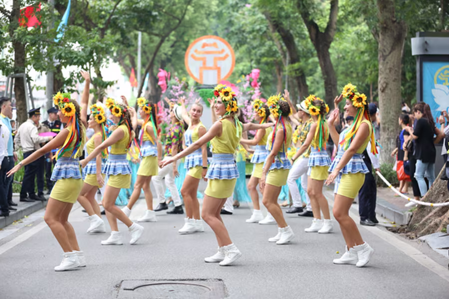 đường phố Hà Nội với sự tham gia biểu diễn của gần 100 nghệ sĩ chuyên
