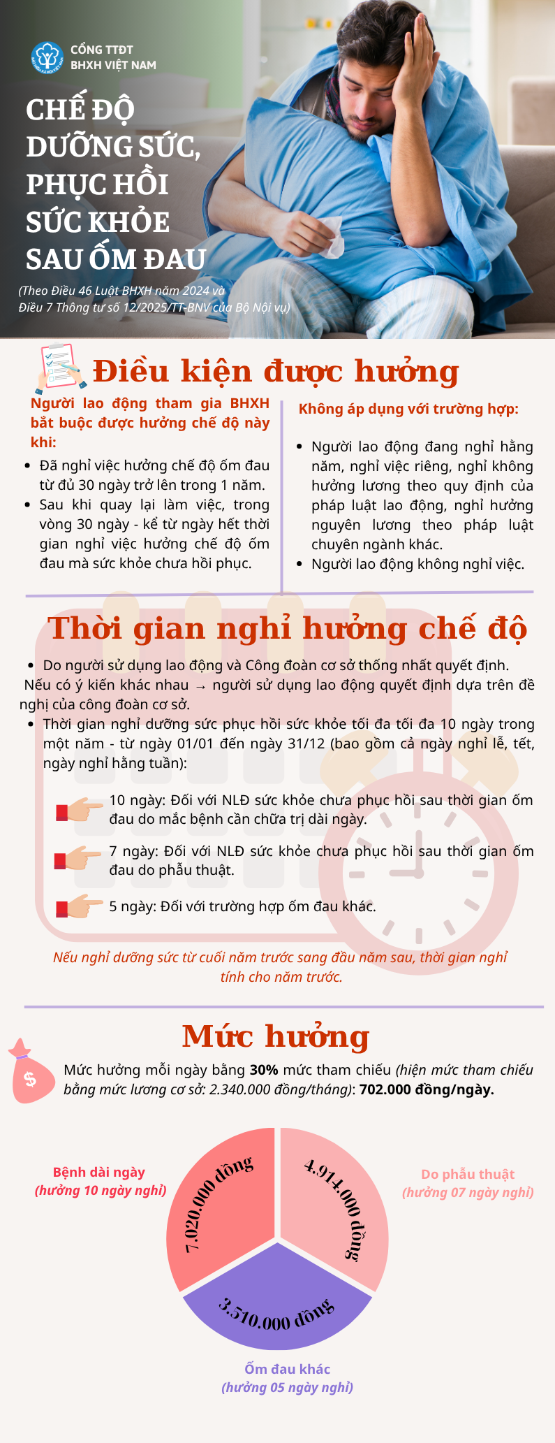 Bảo hiểm xã hội Việt Nam cho biết, chính sách bảo hiểm xã hội bắt buộc, chế độ dưỡng sức, phục hồi sức khỏe sau ốm đau được xem là một quy định mang đậm tính nhân văn.