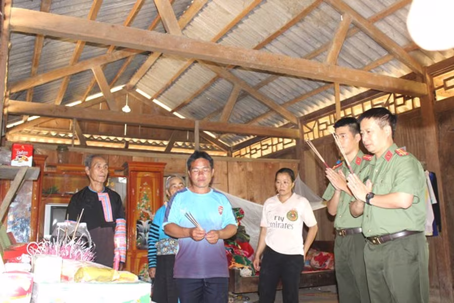 ANTD.VN -Ngay sau khi tuyến đường nối vào bản Pá Hộc, xã Nhi Sơn, huyện Mường Lát, Thanh Hóa được khơi thông, đoàn công tác xã hội của Báo ANTĐ do Trung tá Nguyễn Thanh Bình, Tổng biên tập dẫn đầu đã nhanh chóng có mặt, sẻ chia những mất mát, đau thương, khó khăn với dân bản; thăm hỏi, tặng quà cho thân nhân gia đình đồng chí Thao Văn Súa, Trưởng Công an xã Nhi Sơn hy sinh trong khi giúp dân sơ tán trong cơn lũ dữ tối 3-8.