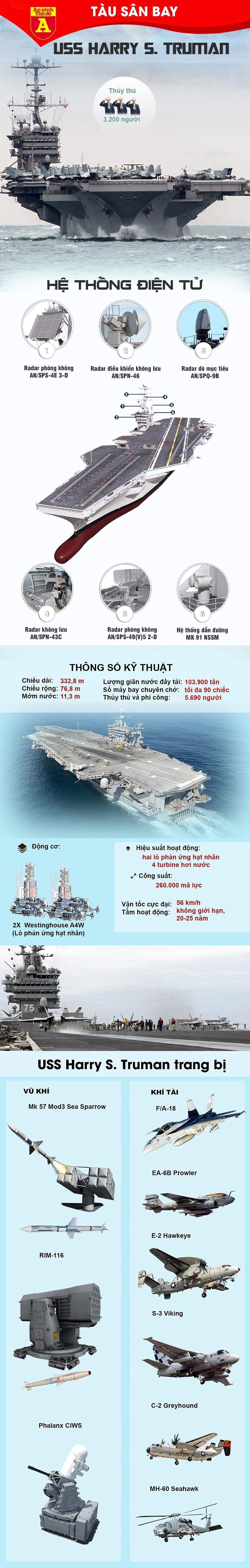 USS Harry S.Truman (CVN-75) là tàu sân bay thứ 8 thuộc lớp siêu hàng không mẫu hạm Nimitz. Tàu được đặt theo tên Tổng thống thứ 33 của Mỹ, đây là một trong những con tàu mạnh nhất thế giới khi nó có thể triển khai tới 90 máy bay các loại, sẵn sàng tung ra các đòn tấn công phủ đầu vào đối phương, khiến đối phương không kịp trở tay.