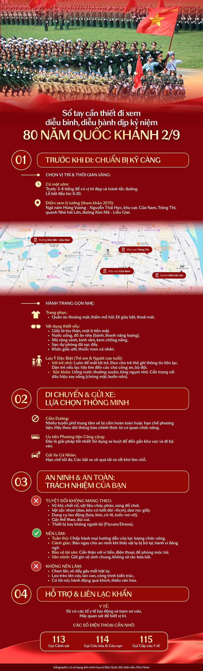 Để thuận tiện cho Nhân dân theo dõi và nắm bắt các thông tin về sự kiện diễu binh, diễu hành, Cổng A80 tổng hợp các nội dung hướng dẫn, chỉ dẫn và các thông tin quan trọng dưới đây: