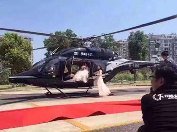 Những hình ảnh trên mạng xã hội Weibo cho thấy đôi cô dâu chú rể cười hạnh phúc khi bước lên trực thăng, trong khi theo báo chí địa phương, họ đều có gia thế giàu có và nổi tiếng. Thời gian gần đây, phương tiện đón dâu mới lạ như xe đạp, xe tải, trực thăng… đang là trào lưu thịnh hành trong các đám cưới tại Trung Quốc.