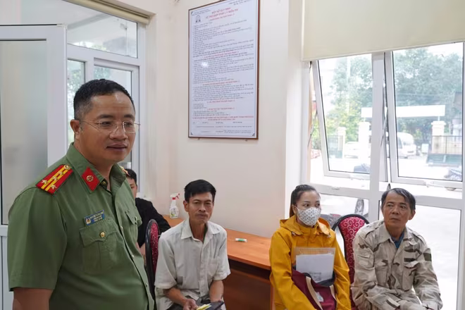 Trung tá Hà Huy Bình – Trưởng Công an xã Quảng Oai trình bày báo cáo tại Hội nghị