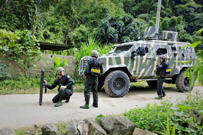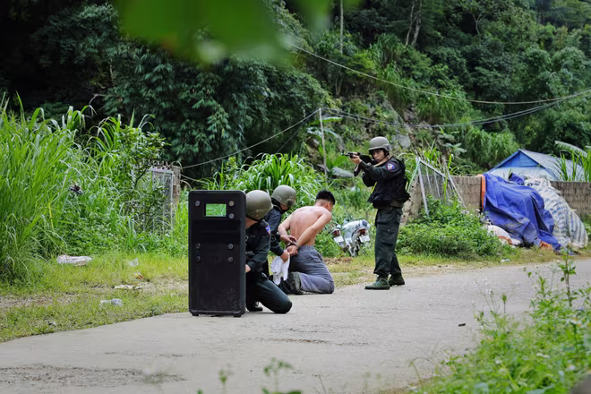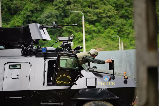 Từ tờ mờ sáng, các cán bộ, chiến sĩ vào vị trí đã được phân công theo từng tổ tấn công bắt đầu thực hiện nhiệm vụ triệt phá, truy bắt 2 đối tượng truy nã. Xe chỉ huy dẫn đầu, tiếp nối theo đó là dàn hoả lực với 2 con xe bọc thép S5, 2 con xe Ram và rất nhiều phương tiện hỗ trợ phía sau, cùng 2 xe cứu thang ở cuối cùng tiến gần đến boongke của đối tượng.