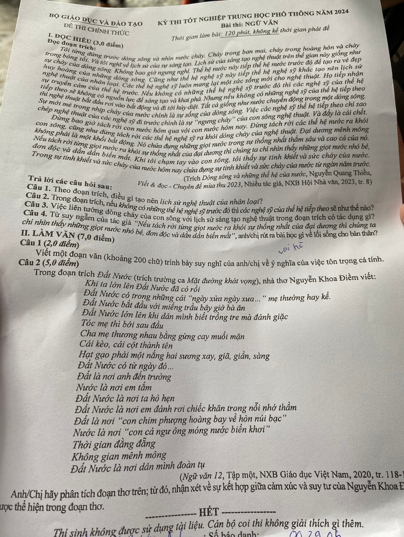 "Đất nước", "Việt Bắc" và "Người lái đò sông Đà" được nhiều sĩ tử dự đoán sẽ vào đề thi tốt nghiệp môn Ngữ văn năm 2024. Đề thi chính thức đã ra đúng vào tác phẩm Đất nước khiến nhiều thí sinh vui mừng vì trúng tủ.