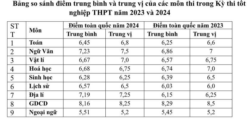 Tính tổng điểm thi tốt nghiệp THPT 2024, cả nước có 2 thủ khoa đến từ Hà Nội và Ninh Bình, cùng đạt 57,85 điểm.