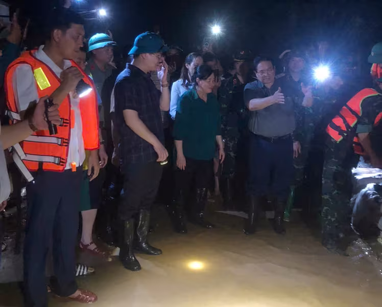 ANTD.VN - Tối nay (9-10), Thủ tướng Phạm Minh Chính; đồng chí Bùi Thị Minh Hoài - Uỷ viên Bộ Chính trị, Bí thư Thành uỷ Hà Nội đã thị sát, kiểm tra công tác ứng trực đảm bảo an toàn đê điều, động viên bà con vùng ngập sâu trong nước tại các xã Đa Phúc, Trung Giã, Sóc Sơn, Hà Nội. Tham gia đoàn công tác có lãnh đạo UBND thành phố; Đại tá Nguyễn Tiến Đạt - Phó Giám đốc CATP Hà Nội...