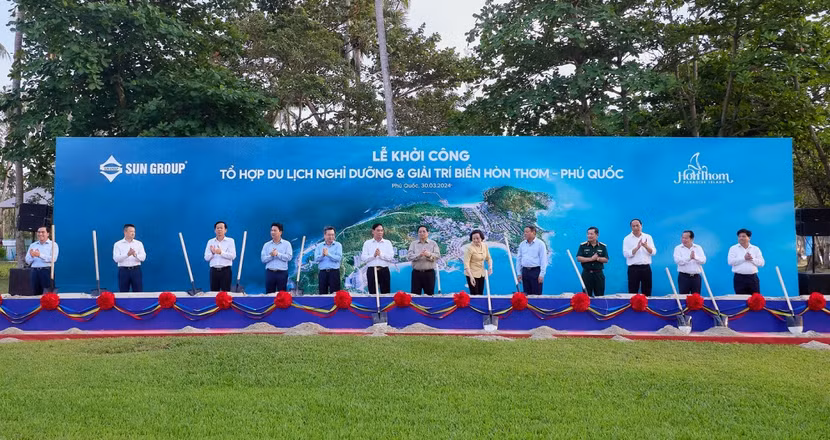 Cũng trong ngày 30/3, Thủ tướng Chính phủ đã tham dự Lễ khởi công Tổ hợp du lịch nghỉ dưỡng và giải trí biển Hòn Thơm với quy mô đầu tư lên tới 50.000 tỷ đồng. Ảnh Minh Khánh