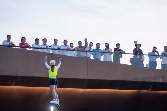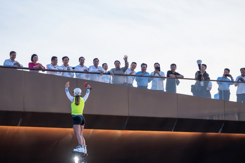 Chiều cùng ngày, đoàn công tác cũng đã có chuyến khảo sát Cầu Hôn - biểu tượng mới của du lịch Phú Quốc và nằm ở vị trí trung tâm của tổ hợp giải trí Thị trấn Hoàng hôn - Sunset Town. Ảnh Minh Khánh