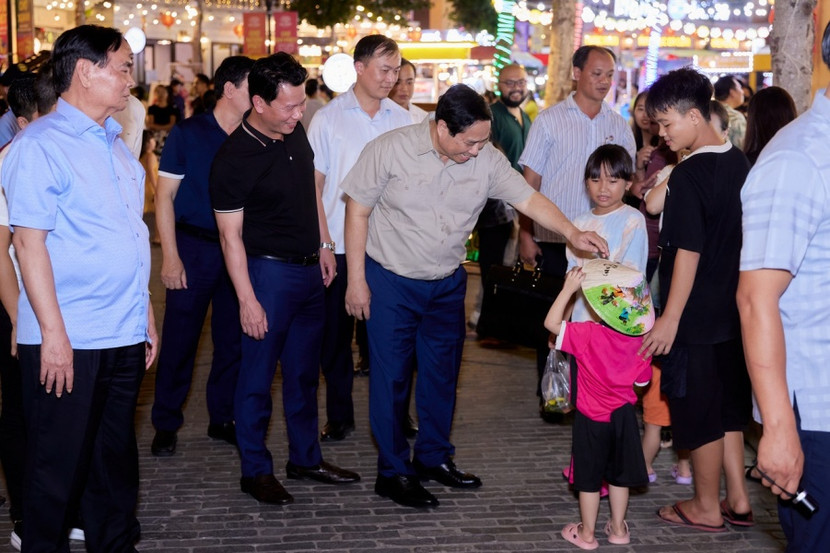 Bên cạnh đó, Thủ tướng cùng đoàn công tác cũng đã có những cuộc trò chuyện với các du khách dạo chơi tại chợ đêm Vui Phết, giao lưu cùng các em nhỏ và lắng nghe những chia sẻ của khách du lịch về các sản phẩm, dịch vụ du lịch tại Phú Quốc. Ảnh Minh Khánh