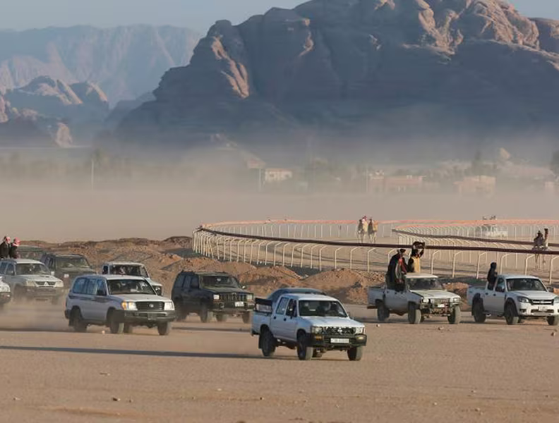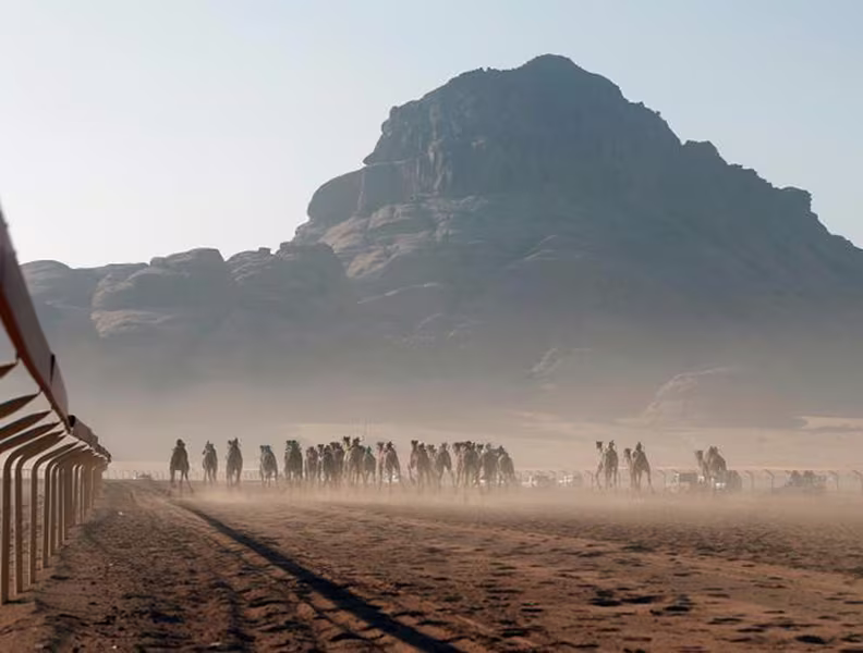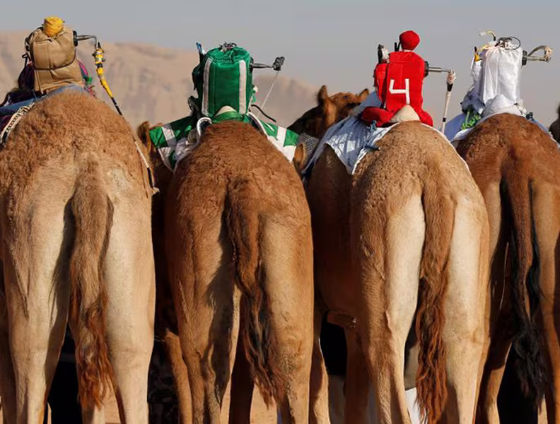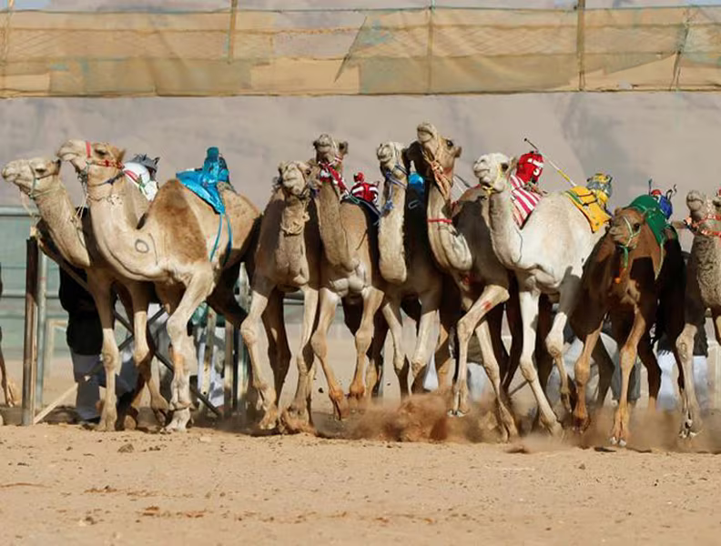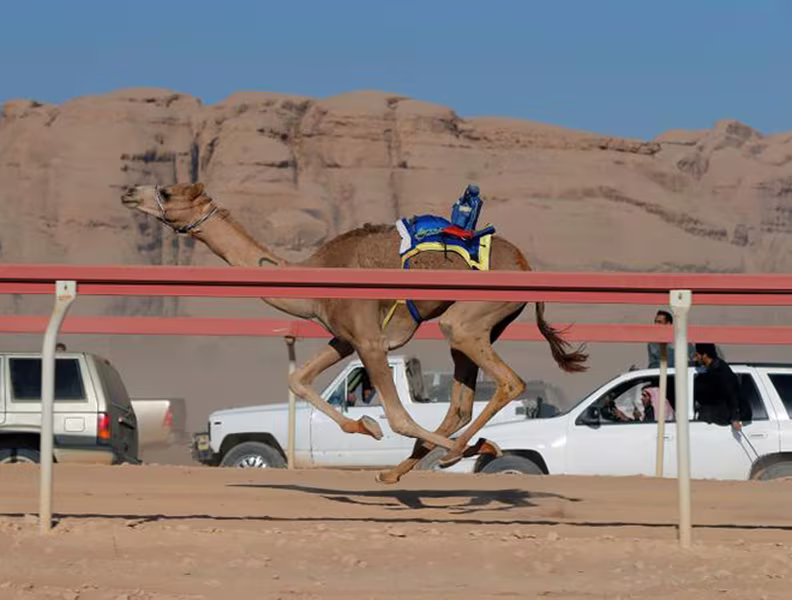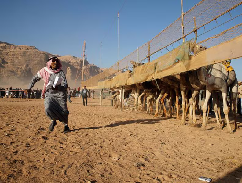 ANTD.VN - Trong số những cuộc đua động vật thú vị trên thế giới như đua ngựa, đua trâu, đua voi hay đua đà điểu..., đua lạc đà ở Jordan mang tới sự phấn khích không hề thua kém. Trong cuộc đua quyết liệt vừa được tổ chức ở Wadi Rum (Jordan), các chú lạc đàn to lớn phải chạy 5km để phân định thắng thua.