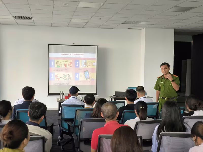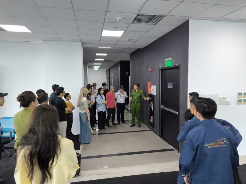 Thực tập phương án, tuyên truyền kỹ năng chữa cháy, thoát nạn tại tòa nhà cao tầng