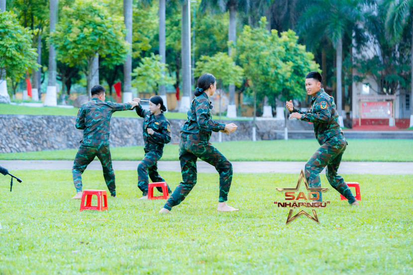 Trong tập 5 Sao nhập ngũ 2024, 8 nghệ sĩ trải nghiệm được học về 2 thế võ tấn công đặc trưng của bộ đội đặc công Việt Nam, bao gồm: Gỡ túm cổ, đá hạ bộ địch; Đỡ đâm bổ nghịch, quật địch ngã sấp. Cả hai động tác đều đòi hỏi kỹ thuật chuẩn xác, tốc độ ra đòn nhanh, mạnh theo đúng tính chất của đặc công: Hạ gục nhanh, tiêu diệt gọn.