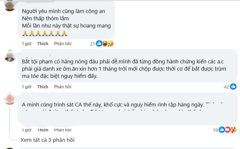 Tài khoản Koi Phạm cũng chia sẻ về sự khổ cực và nguy hiểm đó: "Anh mình cũng trinh sát Công an thế này, khổ cực và nguy hiểm rình rập hàng ngày..."