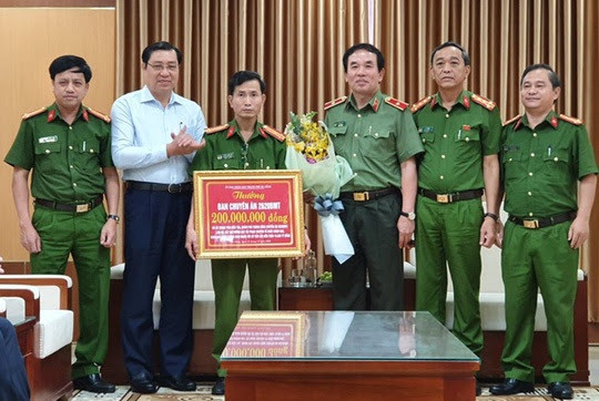 Sáng 14-10, Chủ tịch UBND TP Đà Nẵng Huỳnh Đức Thơ đã biểu dương và thưởng 200 triệu đồng cho Công an TP Đà Nẵng về thành tích phá đường dây đánh bạc qua mạng hơn 10.000 tỷ đồng (ảnh).