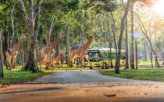 Đặc biệt hấp dẫn là công viên bảo tồn động vật bán hoang dã quy mô hàng đầu châu Á Vinpearl Safari. Đây là nơi đang chăm sóc và bảo tồn gần 200 loài động vật và đa dạng hệ sinh thái thực vật, giúp du khách tìm hiểu và làm quen rất nhiều loài thú quý hiếm đến từ khắp nơi trên thế giới trong môi trường sinh sống gần giống với tự nhiên nhất.