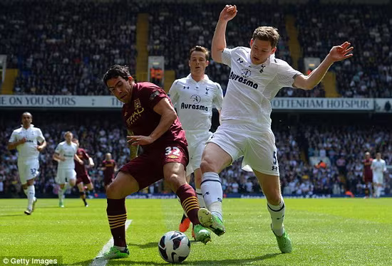 Bị dẫn trước quá sớm, các cầu thủ Tottenham dần lấy lại được thế trận, phút 23, đội chủ nhà có cơ hội nguy hiểm đầu tiên, Dempsey thực hiện đường chuyền đẹp để Walker dứt điểm nhưng tiếc là pha chạm bóng này đã sớm bị Joe Hart chặn đứng.