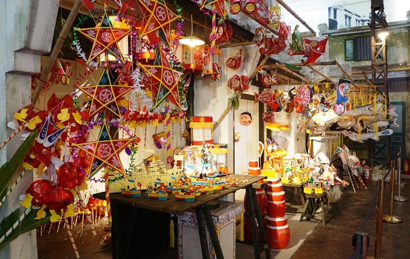 Nội dung trưng bày gồm 2 chủ đề tết Trung thu truyền thống và cung đình. Không gian trưng bày Trung thu truyền thống gồm các gian hàng đồ chơi Trung thu xưa như trống lân, trống ếch, trống bỏi, đầu sư tử, mặt nạ giấy bồi, đồ chơi sắt tây, tiến sĩ giấy, ông đánh gậy trông trăng, đèn kéo quân, đèn ông sư, đèn sao, đèn thỏ, tôm cá...