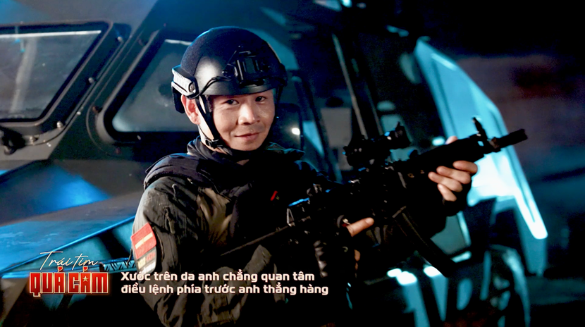 Cùng chung tinh thần ấy, Neko Lê viết nên phần rap hào hùng trong lúc đang làm nhiệm vụ đi rừng ở chặng ghi hình nhập vai lực lượng Phòng chống khủng bố. Với anh, đó không chỉ là lời rap, mà là tuyên ngôn của khí phách quả cảm: “Dẫm lên trên chông gai không quan tâm chi đôi chân anh xước. Ngược chiều cơn sóng, anh đi nhanh hơn cơn gió. Mặc kệ lửa nóng, khi dân cần là anh có. Súng trên vai luôn - sẵn sàng. Khó khăn chi anh - chẳng màng”. Những vần rap ấy như tiếng bước chân rắn rỏi của người lính giữa thời bình, bất chấp gian nguy, luôn tiến về phía trước để bảo vệ sự bình yên cho nhân dân.