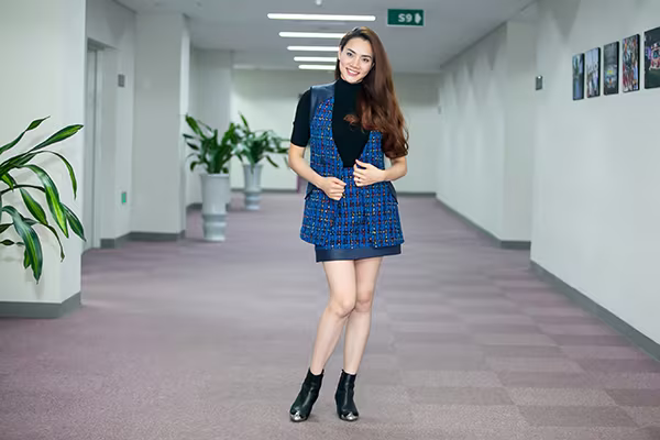 Nữ diễn viên xuất hiện trẻ trung năng động trong trang phục của NTK Xuân Lê