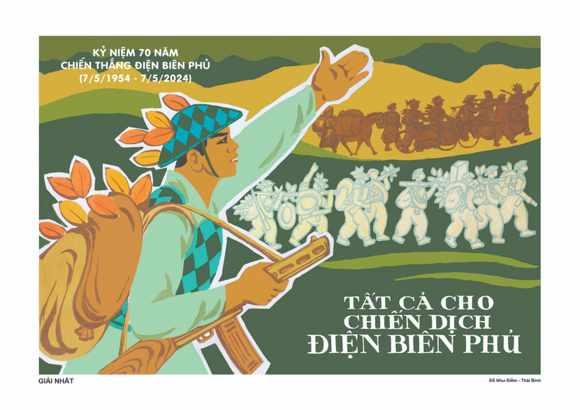 Theo đó, đối với Cuộc thi sáng tác tranh cổ động tuyên truyền Kỷ niệm 70 năm Chiến thắng Điện Biên Phủ, Hội đồng Nghệ thuật đã tuyển chọn 70 tác phẩm tranh tuyên truyền, trong đó có 16 giải thưởng được trao cho các tác phẩm xuất sắc. Cụ thể, Ban Tổ chức đã trao 1 giải Nhất cho tác giả Đỗ Như Điềm với tác phẩm “Tất cả cho chiến dịch Điện Biên Phủ”. 2 giải Nhì thuộc về tác giả Đỗ Như Điềm với tác phẩm “Điện Biên Phủ, Chiến thắng của sức mạnh đại đoàn kết dân tộc Việt Nam” và tác giả Nguyễn Duy Thành với tác phẩm “Kỷ niệm 70 năm Chiến thắng Điện Biên Phủ - Bác bảo thắng là thắng”. Ngoài ra, Ban tổ chức còn trao 2 giải Ba, 10 giải Khuyến khích và 1 giải Phong trào cho các tác phẩm có chất lượng.
