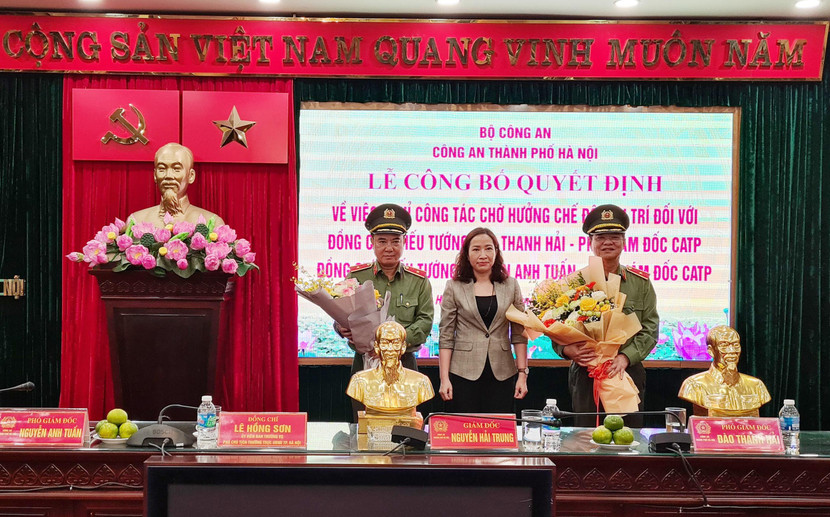 Sau 43 năm công tác và cống hiến trong lực lượng Công an Thủ đô, 2 đồng chí Thiếu tướng Đào Thanh Hải, Phó Bí thư Đảng ủy, Phó Giám đốc CATP và Thiếu tướng Nguyễn Anh Tuấn, Thủ trưởng Cơ quan An ninh điều tra, Phó Giám đốc CATP Hà Nội đã được Bộ trưởng Bộ Công an trao quyết định nghỉ công tác chờ hưởng chế độ hưu trí.