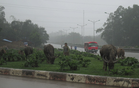 Chủ nhân của chúng vẫn còn đứng đây. Em nói đã chăn trâu trên quốc lộ từ lâu,