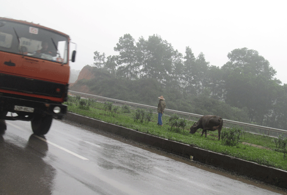 Những xe này có thể gặp tai nạn bất cứ lúc nào nếu trâu bò lao xuống đường